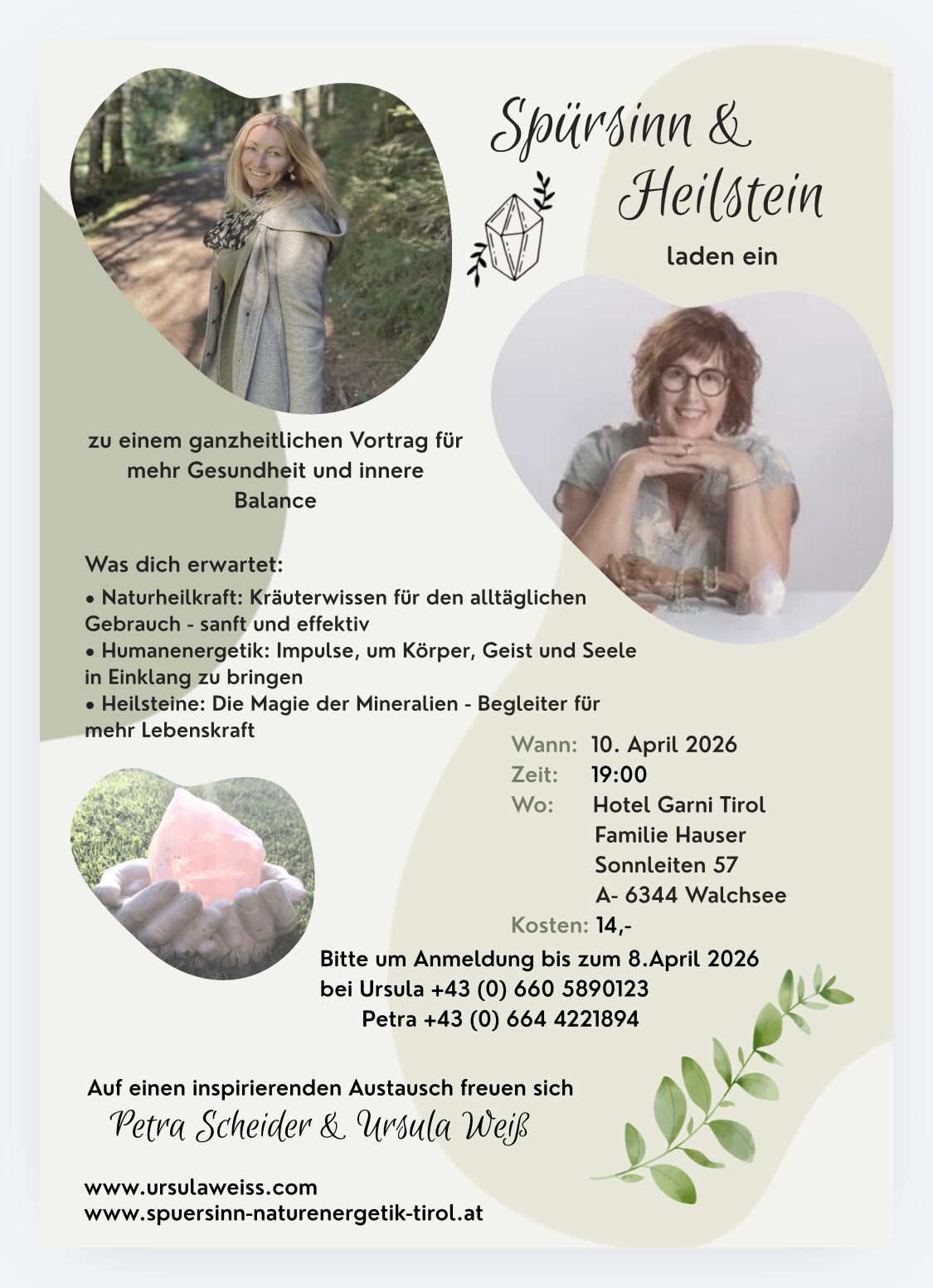 Die Natur schenkt uns Antworten, wenn wir bereit sind, hinzuhören. Ich freue mich darauf, dir mein Wissen weiterzugeben und dich auf deinem Weg zu begleiten – achtsam, authentisch und mit viel Herz.